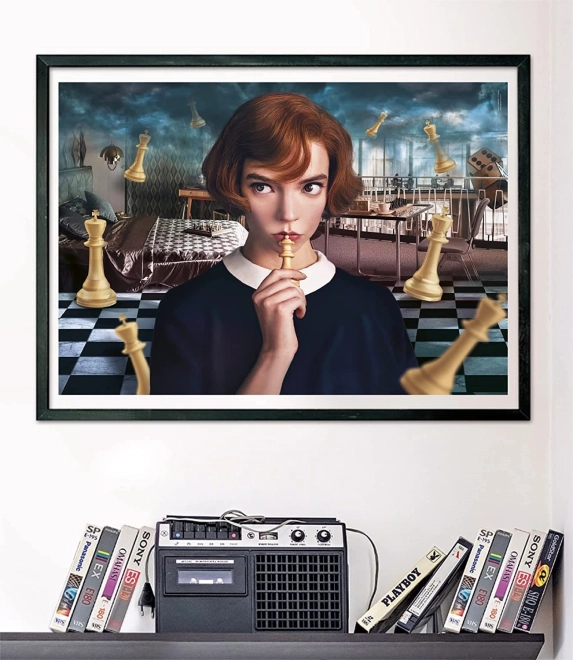 Otkrijte čaroliju svijeta Netflix: Damin gambit uz kvalitetne puzzle od 1000 dijelova. Nakon sastavljanja nastaje dojmljiva slika veličine približno 70 × 50 cm, koja je izvrsna za uokvirivanje i uređenje interijera.