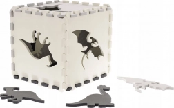 Izmjenjive siluete dinosaura razvijaju finu motoriku i kreativnost. Neutralna siva paleta uklapa se u svaki interijer.