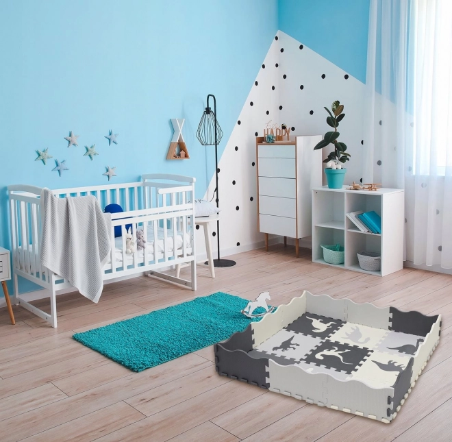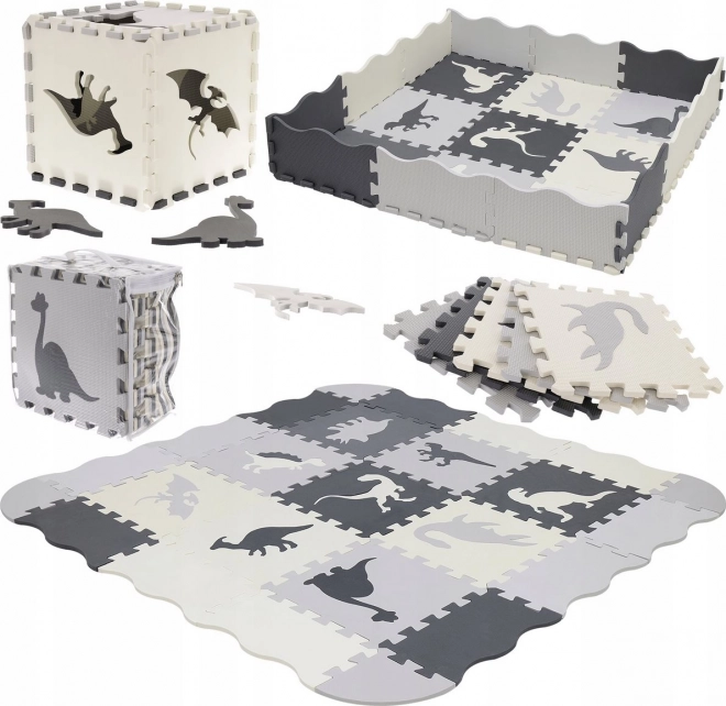 Stvorite svom djetetu siguran kutak za igru s kvalitetnom pjenastom podlogom s motivom dinosaura u elegantnim sivim nijansama. Pojedinačni dijelovi jednostavno se slažu kao puzzle, uz dodatak izmjenjivih oblika koji potiču finu motoriku i maštu.