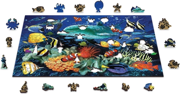 Otkrijte pametnu zabavu s drvenim puzzlama koje oduševljavaju detaljnim podmorskim motivom i ističu se dvostranim izvedbom. Možete slagati prema slici na licu ili prema ponavljajućem uzorku na naličju – idealno za trening koncentracije i prostorne mašte.