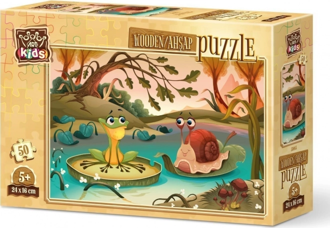 Otkrijte radost slaganja s ovim drvenim puzzlama od 50 dijelova, izrađenima od elastične afričke šperploče. Idealne za djecu i odrasle, s motivom Prijatelji s jezera i kompaktnom veličinom nakon slaganja cca 24 × 16 cm.