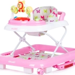 Zahvaljujući trima visinskim razinama lako ćete prilagoditi hodalicu aktualnoj visini djeteta. Prednji kotači okreću se za 360°, pa se dijete može kretati glatko u svim smjerovima. Praktično je i brzo sklapanje te mogućnost da se panel odvoji i koristi zasebno kao igračka.