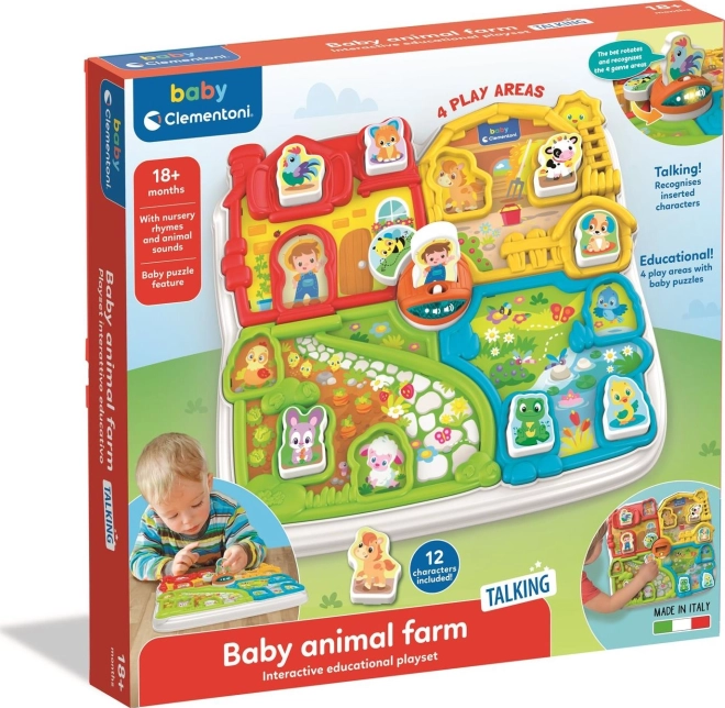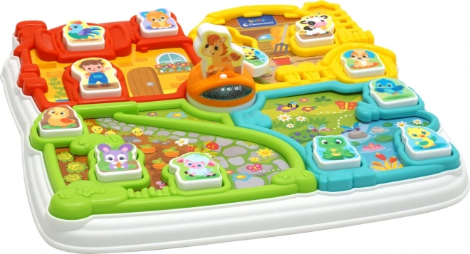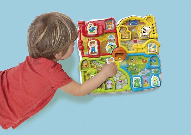 Interaktivna farma nudi četiri raznobojna područja 13 dvorište, staju, vrt i ribnjak. Također uključuje umetke s 12 dijelova koje djeca mogu koristiti kao figurice u daljnjim igrama. Rotirajuća pčelica oko mostića osigurava dodatni zabavni element.