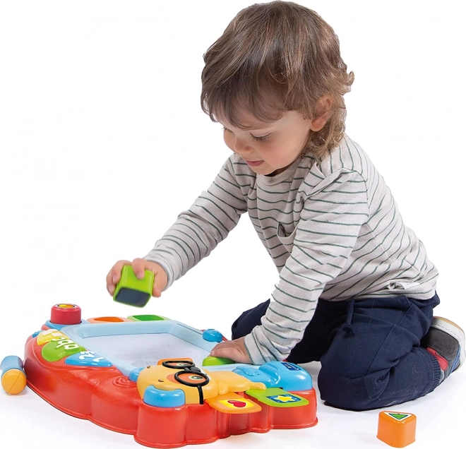 Gumbi aktiviraju glazbu i sadržaje osmišljene tako da potiču otkrivanje prvih slova, brojeva i oblika te vode dijete ka privlačnoj i interaktivnoj igri.
