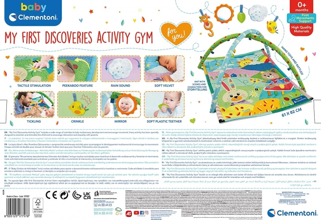 Clementoni Baby igraća podloga Moja prva otkrića dizajnirana je za potporu dječjem razvoju i motoričkim vještinama. Ovaj interaktivni prostor omogućuje djeci da istražuju svijet oko sebe dok se igraju u sigurnom i udobnom okruženju.
