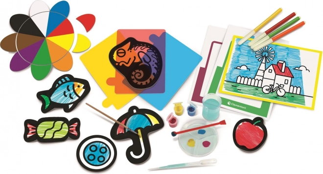 Montessori set od Clementoni dizajniran je za razvoj dječjih vještina u području boja i umjetnosti. Djeca mogu eksperimentirati s bojama i koristiti razne umjetničke alate: