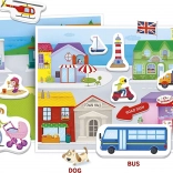 Otkrijte zabavnu edukativnu igru uz koju djeca lako nauče više od 50 engleskih riječi. Postavljanjem predmeta u odgovarajuće okruženje razvijaju jezične vještine, vizualnu maštu i logičko razmišljanje. Proizvedeno od održivih, biorazgradivih i netoksičnih materijala u liniji Play for Future.
