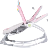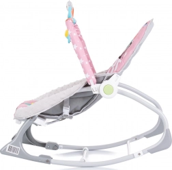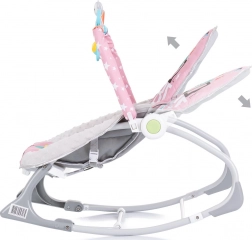 CHIPOLINO Baby Spa je praktična dječja ležaljka koja raste s vašom bebom. Zahvaljujući rješenju 2-u-1 najprije služi kao njihaljka za novorođenče (do 9 kg), a kasnije kao stolić za samostalno sjedeću djecu (do 18 kg). Nježne vibracije i glazbene melodije umiruju i pomažu djetetu da se odmori, dok luk s visećim igračkama potiče razvoj vizualne i motoričke koordinacije.