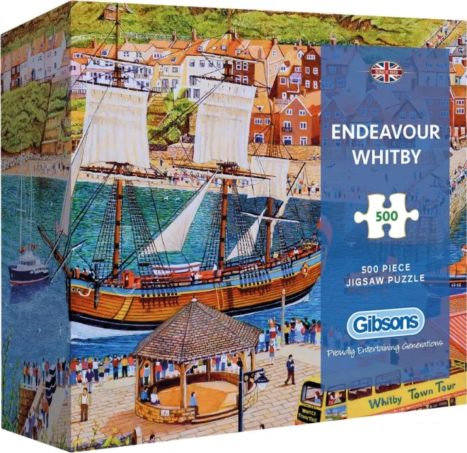 Sastavljivo putovanje s puzzle Endeavour Whitby! Doživite radost stvaranja s ovim prekrasnim puzzleom od pet stotina dijelova, koji donosi fascinantan motiv grada Whitby.