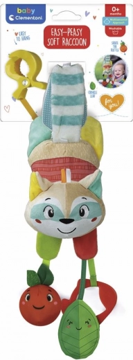 Ovaj baršunasto mekani rakun brenda CLEMENTONI donosi djeci sigurnu zabavu i poticaje za otkrivanje svijeta. Različite teksture, zvukovi i oblici zaokupljaju vid, sluh i dodir te pomažu razvijati koordinaciju ruka–oko. Zahvaljujući kopči za vješanje igračku lako pričvrstite na kolica, autosjedalicu ili krevetić.