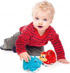 Ovaj veseli plavi nilski konjić idealan je pratitelj za svakodnevnu igru. Dovoljno ga je naviti i promatrati kako kreće – djeca tako prirodno vježbaju koordinaciju ruka–oko i uče da akcija izaziva reakciju. Kompaktna veličina i zaobljeni oblici osiguravaju sigurnu manipulaciju i za male dječje ručice.