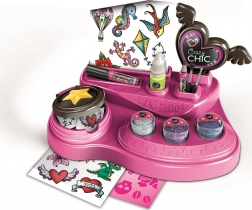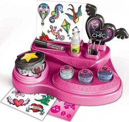 Otkrijte zabavan svijet kreativnosti s djevojačkim setom privremenih tetovaža CRAZY CHIC. Zahvaljujući bogatoj opremi – samoljepljivim šablonama, šarenom glitteru i tjelesnom bojilu sa svjetlećim efektom – kreirat ćete originalan look za svaku priliku. Praktičan radni stolić drži sve pribore na okupu i olakšava nanošenje.