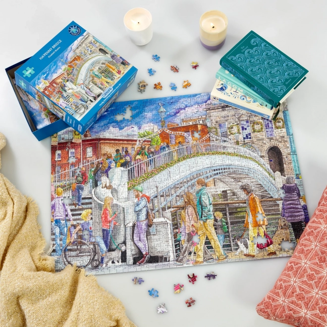 Uronite u svijet mira i nostalgije s premium puzzleom GIBSONS Most Ha'penny. Slika prikazuje atmosferičan prizor s naglaskom na boje i detalje koji će oduševiti i početnike i iskusne slagatelje. 1000 dijelova nudi idealan izazov za duge večeri i zajedničke trenutke s obitelji.