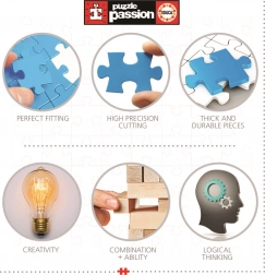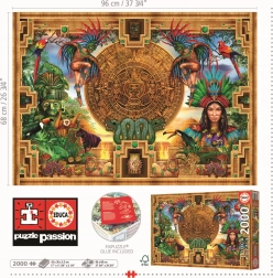 Otkrijte čaroliju povijesti uz puzzle Asteko-Majska Povezanost. Sastavljanje ovog puzzla od 2000 dijelova prenijet će vas u drevne civilizacije u dimenzijama približno 96 x 68 cm. BESPLATNO je priloženo ljepilo FIX PUZZLE®, koje jamči trajno spajanje.