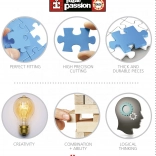 Svaka slagalica ima 500 dijelova i nakon slaganja doseže dimenzije cca 34 × 48 cm. Precizna izrada dijelova jamči točno spajanje, živopisne boje i izdržljiv materijal za ponovno slaganje.