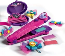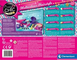 Otkrijte kreativni svijet frizura s frizerskim studiom Crazy Chic od CLEMENTONI. Zahvaljujući inovativnom peglu za bojanje kose djeca lako stvaraju modne šarene pramenove, dugine uvojke i originalne frizure. Dovoljno je umetnuti obojene tablete u posebne pretince i prenijeti boju na kosu – brzo, zabavno i sigurno kućno styling rješenje.
