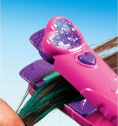 Studio je osmišljen kako bi djeci omogućio da se kroz igru poigraju bojama i frizurama. Inovativna pegla s pretincima za bojni prah osigurava jednostavnu aplikaciju, dok dodaci poput perlica i naljepnica upotpunjuju jedinstveni stil. Idealno za male stilistice koje vole trendi frizure i kreativno bojanje kose bez trajnih promjena.