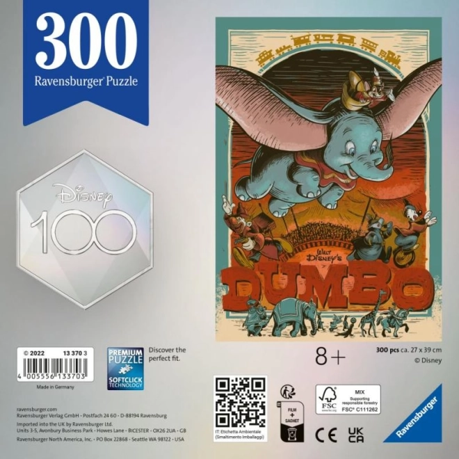 Proslavite obljetnicu DISNEY-a s čarobnim motivom Dumba i uživajte u kvalitetnim puzzlama od 300 dijelova marke Ravensburger. Jedinstveni, precizno izrezani dijelovi savršeno pristaju, oduševljavaju živim bojama te su idealni za opuštajuću zabavu i vježbanje slagalačkih vještina.