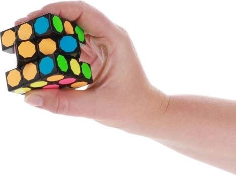 Ova zagonetna kocka dolazi s jedinstvenim dizajnom koji uključuje višebojne šesterokutne naljepnice na crnoj plastičnoj osnovi. Odlična je za mentalne vježbe i zabavu.