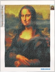 Reproducirajte slavnu umjetničku sliku Mona Lisa na svom platnu pomoću sitnih dijamantnih kamenčića.