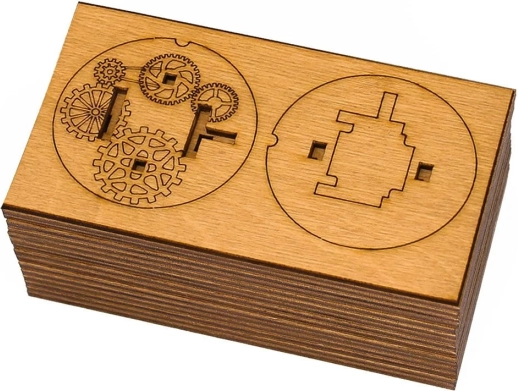 Izrađeno od prirodnog brezova drva s dekorativnim graviranjem i mehanikom nadahnutom zupčanicima. Izdržljiva i estetska izrada.