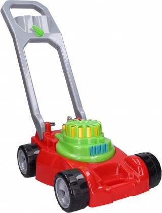 Kosilica za travu. Sastavljena kosilica 68(d) x 28(š) x 55(v) cm, uključujući ručku. Prednji kotači su slobodni, stražnji kotači pri vožnji klikću. Kosilica bez ručke 37x28x19 cm. U ručki je klikajući okretni prekidač. U sredini kosilice nalazi se šarena rotirajuća spirala koja se pokreće izvlačenjem ili uvlačenjem poluge.