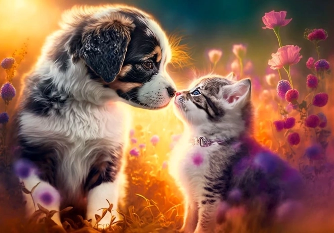 Otkrijte čaroliju „novog prijateljstva” između psa i mačke. Puzzle od 500 dijelova nude ugodan izazov za djecu i odrasle, a nakon slaganja stvaraju elegantnu sliku dimenzija 47 × 33 cm.