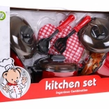 Ovaj fantastični kuhinjski set idealan je za djecu od 3 godine. Set sadrži razne lonce i tave s poklopcima, kuhinjske alate i imitacije hrane za realističnu igru.