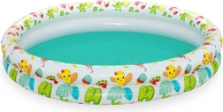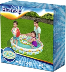 Ljetna zabava u vrtu u trenu! Ovaj set 3-u-1 od BESTWAY kombinira nafukavajući bazen promjera 122 cm, plivaći kolut i plažnu loptu s veselim tropskim motivima. Izdržljiv vinil, dvije zračne komore i laka prenosivost osiguravaju sigurno i razigrano osvježenje za najmlađe.