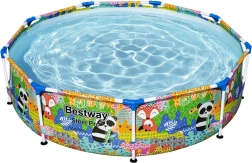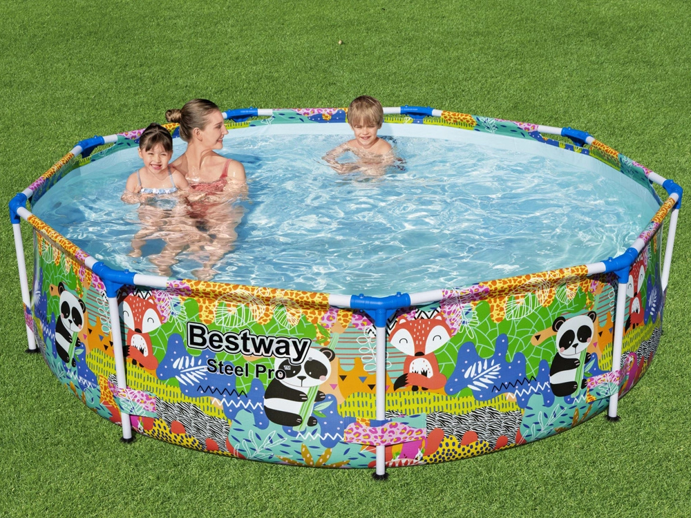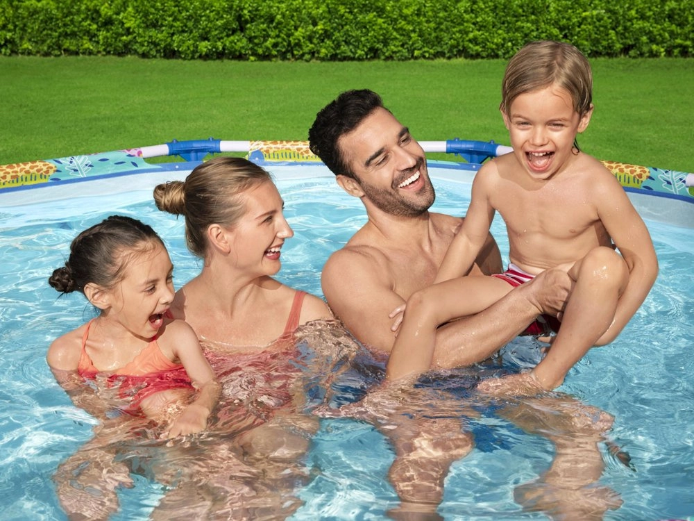 Idealno rješenje za manje vrtove, dvorišta ili terase: okrugli okvirni bazen BESTWAY s jednostavnom montažom donosi osvježenje i puno zabave za djecu i roditelje. Stabilan čelični okvir i kvalitetne mekane stijenke s veselom životinjskom grafikom stvaraju sigurno okruženje za vodene radosti.
