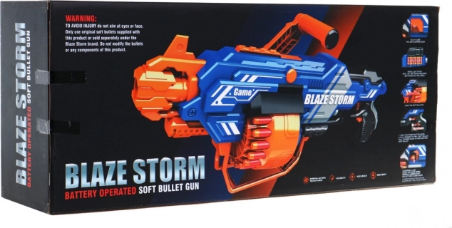 Blaster BLAZE STORM je jednostavan za rukovanje i idealan za dinamičnu igru u kući i na otvorenom. Dovoljno je umetnuti baterije (8× AA 1,5 V, nisu uključene), napuniti bubanj, držati tipku za napajanje i pritisnuti okidač. Možete birati pojedinačne hitce ili neprekidnu rafalnu paljbu ovisno o tome koliko dugo držite okidač.