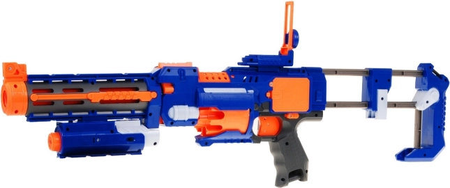 Duga cijev sa stabilizacijskim valjcima pomaže preciznijem letu strelice, dok klizni servisni otvor olakšava uklanjanje zaglavljenog streljiva. Tu je i prekidač ON/OFF za sigurno blokiranje okidača, prednje punjenje te praktičan laserski nišan za bolje ciljanje. U pakiranju ćete naći 20 pjenastih strelica, pa možete odmah zaigrati.