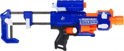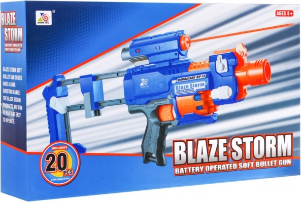 Blaze Storm je pouzdan pjenasti blaster u plavo–narančastoj izvedbi koji će razveseliti svakog malog zaljubljenika u akcijsku igru. Zahvaljujući automatskom električnom pogonu na 3× AA baterije i prednjem punjenju djeca će uživati u glatkoj i sigurnoj zabavi. Laserski ciljnika (2× LR44 u pakiranju) pomaže precizno ciljati, dok prozorčić za otpuštanje zaglavljenih metaka osigurava nesmetan rad.