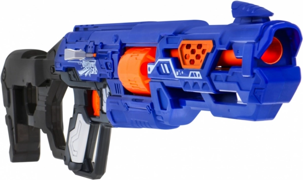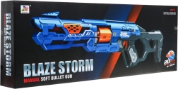 Zabavan i siguran blaster za djecu od 8 godina BLAZE STORM nudi ručni mehanizam bez baterija, brzu paljbu i ergonomsko upravljanje. Dovoljno je napuniti bubanj pjenastim mecima, nategnuti kliznim zatvaračem i pritisnuti okidač. U pakiranju je 20 mekanih pjenastih metaka za dugačke sate aktivne igre.