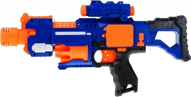 Odvojivi kundak pretvara blaster u kompaktni pištolj, duga cijev s dva rotirajuća valjka stabilizira hitac, a priloženi ciljački nastavak poboljšava nišanjenje. Sigurnost povećava prekidač ON/OFF za blokadu okidača. U paketu se nalazi 20 pjenastih metaka, pa ništa ne sprječava dugu i sigurnu zabavu u dvorištu i kod kuće.
