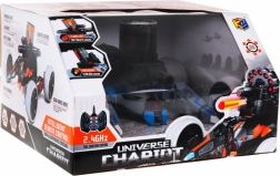 Terenski RC borbeni automobil spaja brzu vožnju i pucalačke dvoboje. Zahvaljujući radio upravljanju 2,4 GHz uživat ćete u stabilnom signalu bez smetnji, možete se utrkivati i s više auta odjednom te koristiti glatko upravljanje naprijed/natrag i desno/lijevo. Rotirajuća kupola s podesivom visinom pucanja i laserskim ciljnikom pomoći će vam pogoditi metu s maksimalnom preciznošću.