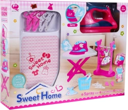Ovaj bogato opremljeni set nudi realističan doživljaj kućanskih poslova za male pomoćnike. Glačalo zahtijeva 3 AA baterije koje su uključene u pakiranje i opremljeno je rotirajućim regulatorom za podešavanje temperature glačanja, što djeci nudi osjećaj prave uporabe kućanskih uređaja.