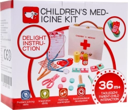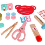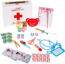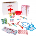 Ova drvena set za liječnike sadrži sve što mali liječnik treba za liječenje svojih pacijenata. Set uključuje 30 različitih dijelova koji svojim oblicima i bojama oponašaju stvarne medicinske instrumente. Zahvaljujući ovom setu djeca ne samo da prebrođuju strah od liječnika, nego također uživaju u igri punoj mašte i veselja. Pojedinačni elementi seta su prijateljski i šareni što osigurava da će djeci odgovarati i privlačiti ih na istraživanje.