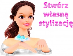 Otkrijte zabavu sa stilizirajućom glavom lutke s dugom smeđom kosom. Djeca mogu vježbati češljanje, pletenje i ukrašavanje kose pomoću priloženih dodataka. Igra potiče kreativnost, finu motoriku i maštu.