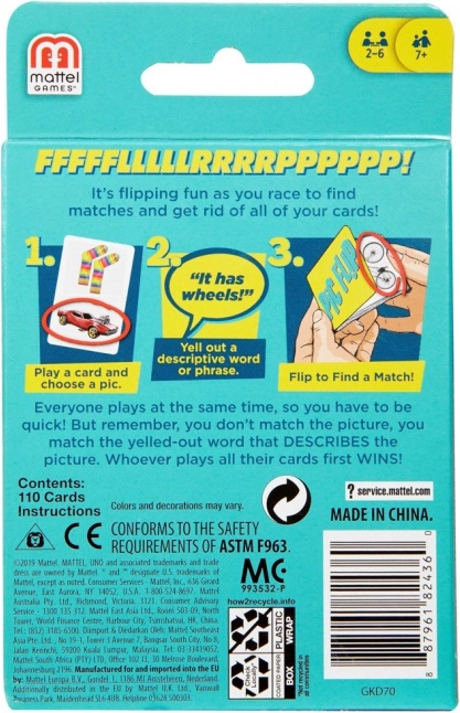 Pic Flip je dinamična kartaška igra na zapažanje i jezične asocijacije. Umjesto podudaranja slika–slika, tražite kartu koja odgovara riječi ili frazi koja opisuje sliku. Svi igraju odjednom – odbrojavanje „3…2…1… Start” i utrka počinje! Tko se prvi riješi svog špila, pobjeđuje.
