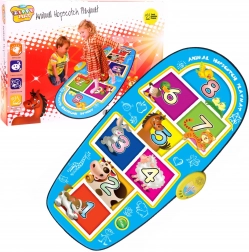 Ova šarena skakaća podloga spaja kretanje, učenje i zabavu. Svako od 8 velikih polja povezano je s drugom životinjom (pas, krava, zeko, janje, konj, patka, mačka, ptičice) te pri pritisku reproducira svoj karakteristični zvuk. Veliki upravljački panel sa svjetlima i zvučnikom oživljava igru melodijama i motivira djecu na aktivno kretanje.