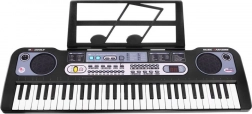 Klavijatura se napaja mrežnim napajanjem ili sa 6 AA baterija, što osigurava jednostavnu prenosivost. U pakiranju su uključeni mikrofon i stalak za note, što čini kompletan set za sve male glazbene talente.