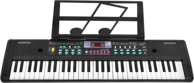 Klavijatura je idealna za početnike zahvaljujući korisnički pristupačnom dizajnu i širokom spektru funkcija. Opremljena je s 61 tipkom te omogućuje odabir 16 tonova poput klavira, saksofona ili trube i 10 ritmova od valcera do diska. U paketu je i mikrofon za karaoke zabavu.
