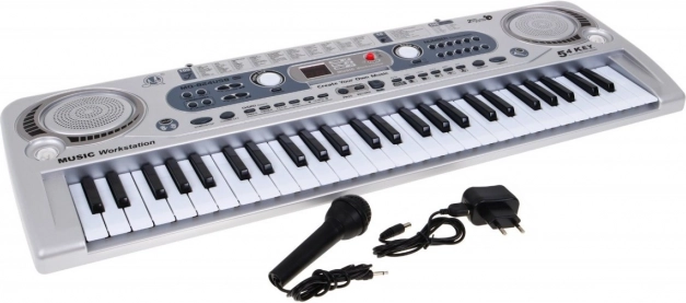 Otkrijte zabavan i edukativan glazbeni instrument za djecu 5+. Ova srebrna elektronička klavijatura nudi 54 tipke, USB ulaz, snimanje i ugrađene zvučnike. Zahvaljujući 100 tonova, 100 ritmova, 10 demo skladbi i priloženom mikrofonu, idealna je za prve korake u svijetu glazbe.