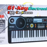 Oprema uključuje 16 realističnih tonova (npr. klavir, harfa, jazz gitara, violončelo, truba, saksofon), 10 ritmova (disco, funk, balada, cha-cha, polka itd.), 6 demo melodija i 6 setova bubnjarskih zvukova. Funkcije MP3, USB ulaz i mikrofon proširuju mogućnosti vlastitom glazbom i karaokama. Režim akorda (single/finger) i učni režim podupiru pravilne navike pri sviranju.