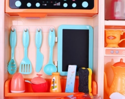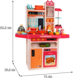 Velika multifunkcionalna dječja kuhinjica donosi realističnu igru kuhanja zahvaljujući tekućoj vodi iz slavine, svjetlosnim i zvučnim efektima te interaktivnom plameniku s parom. Uključuje 65 dodataka, uključujući hladnjak, pećnicu, sudoper, ploču za kredu i zabavni „jajowar” za jaja. Idealno za djecu od 3 godine naviše.