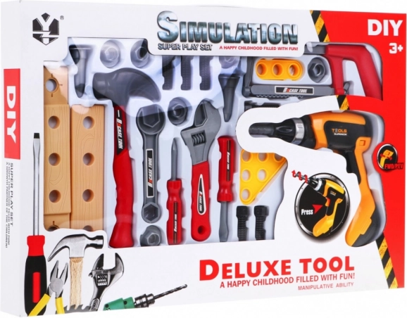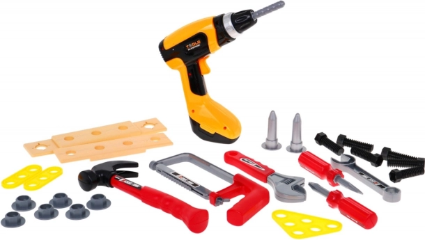 Ovaj bogati set alata nudi djeci siguran i zabavan način za oponašanje stvarnih „uradi sam” aktivnosti. Zvijezda seta je aku bušilica/odvijač napajana s 2× AA baterije (nisu uključene), koja pri zatezanju i otpuštanju proizvodi realistične zvukove. Zajedno s ključevima, čekićem, odvijačima, pilicom, vijcima i spojnim dijelovima djeca mogu sastavljati vlastite projekte i učiti osnove rada s alatom.