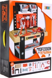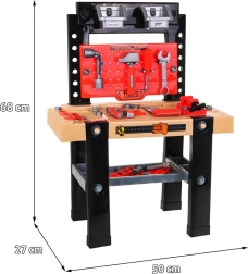 Izgradite djeci njihovu prvu radionicu! Stabilan radni stolić s kukama, policom i košarama za odlaganje pruža pregledno mjesto za igru i učenje. Set sadrži raznolik izbor plastičnog alata i spojnih dijelova, sigurnih za male ruke i izvrsnih za vježbanje hvata, koordinacije oko–ruka i strpljenja.