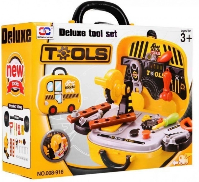 Praktičan koferčić koji djeci olakšava spremanje i prenošenje seta alata. Lagani je i lako prenosiv s dizajnom školskog autobusa.