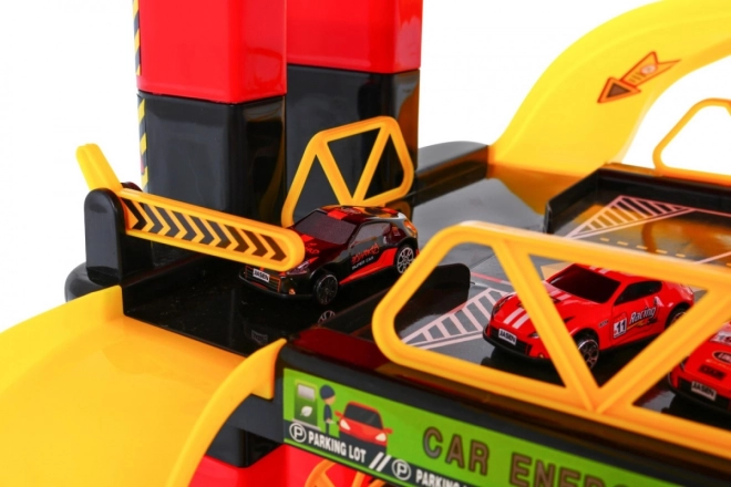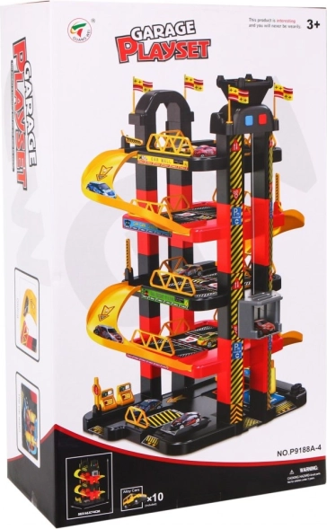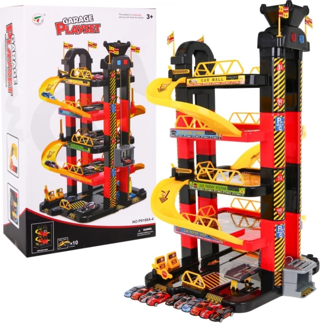 Dječja parkirna garaža nudi uzbudljivu igraću površinu s pet razina, koje su dostupne zahvaljujući dizalu i toboganima. Najniža razina uključuje autopraonicu, automehaničarsku radionicu i benzinsku postaju. Ostale razine služe kao parkirališta za automobile, dok je sasvim na vrhu mjesto za helikopter s pomičnim dizalom sa svjetlosnim efektima koje pokreću tri AA baterije (nisu uključene).
